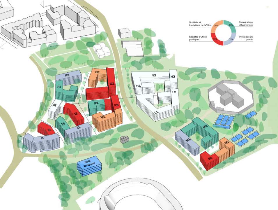 Les investisseurs pour la réalisation du 2e secteur de l’écoquartier des Plaines-du-Loup sont désormais connus. Coopératives d’habitation, sociétés d’utilité publique, investisseurs privés ou encore sociétés et fondations privées de la Ville: au total, 15 investisseurs ont été retenus en vue de la conception de 16 bâtiments. La règle des trois tiers pour garantir la mixité sociale, fil rouge de la conception de l’ensemble de l’écoquartier, est entièrement respectée avec des logements à loyer abordable, modéré et du marché libre ou en propriété. Le début des chantiers est attendu pour 2028 et l’arrivée des premières habitantes et habitants pour 2031. 1200 logements seront réalisés et 30’000m2 de surface d’activités mis à disposition.
