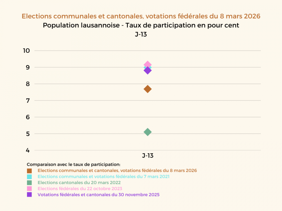 J-13: Le taux de participation de la population lausannoise avec le droit de vote est de 7.69%.