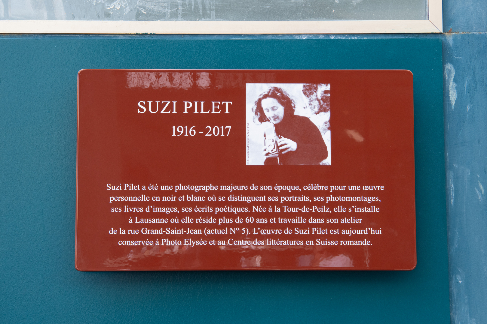 La Ville de Lausanne est heureuse de rendre hommage à Suzi Pilet et de perpétuer le souvenir de son travail photographique exceptionnel en inaugurant une plaque commémorative à la rue Grand-Saint-Jean, là où se trouvait son atelier pendant 50 ans.