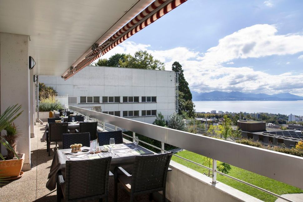 Dans le quartier tranquille de Boisy, au rez-de-chaussée d’un immeuble de logements des années 60, ce restaurant discret propose une terrasse ensoleillée avec une vue dégagée sur le lac Léman.