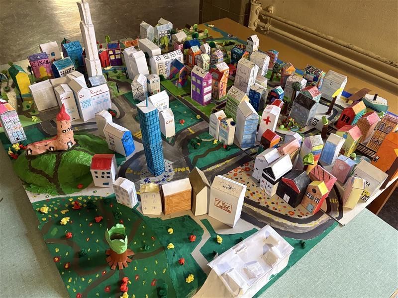 - J'ai beaucoup aimé apprendre l'organisation d'une ville puis réaliser cette maquette avec toute la classe. Léonore